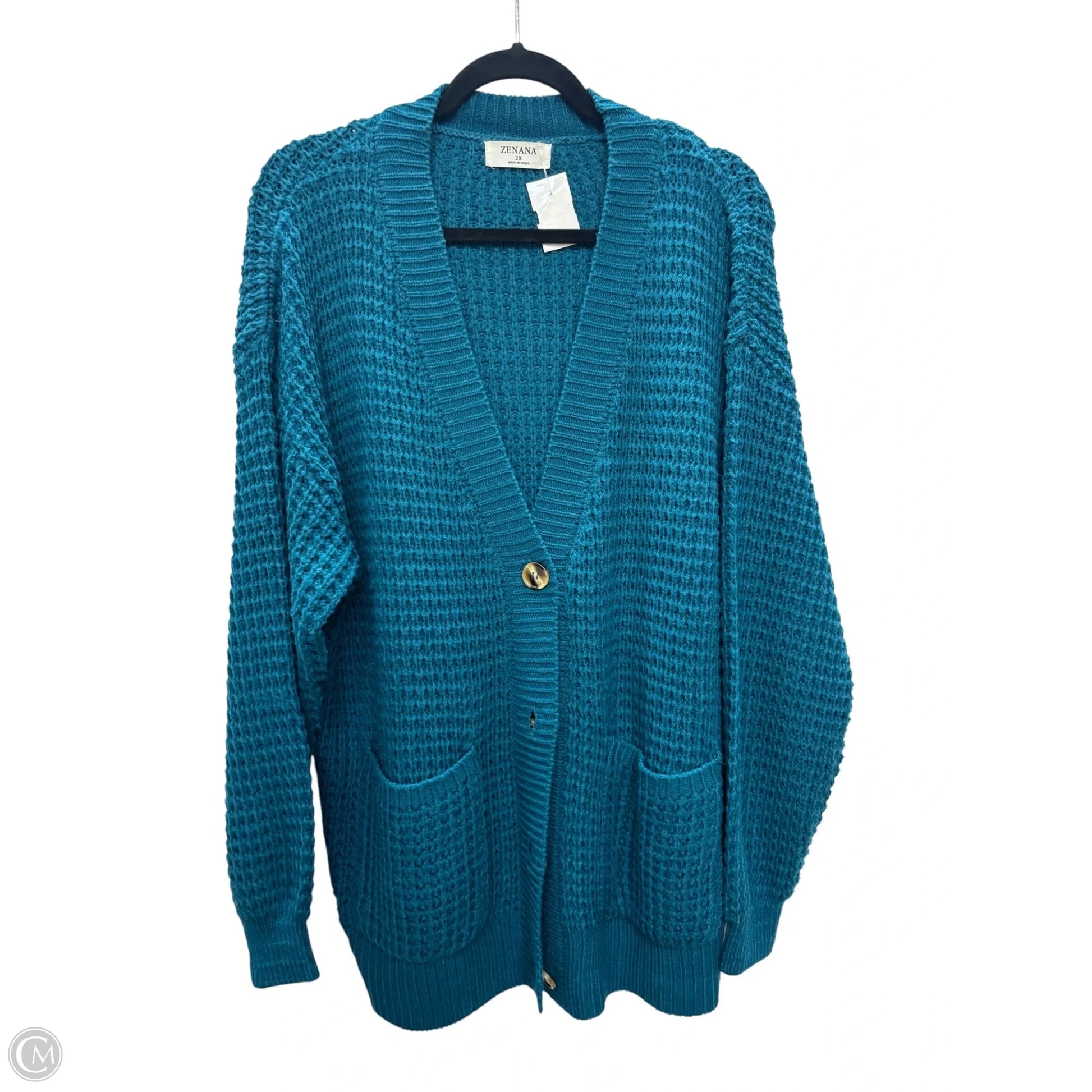 Cardigan By Zenana Outfitters In Blue, Size: 2x